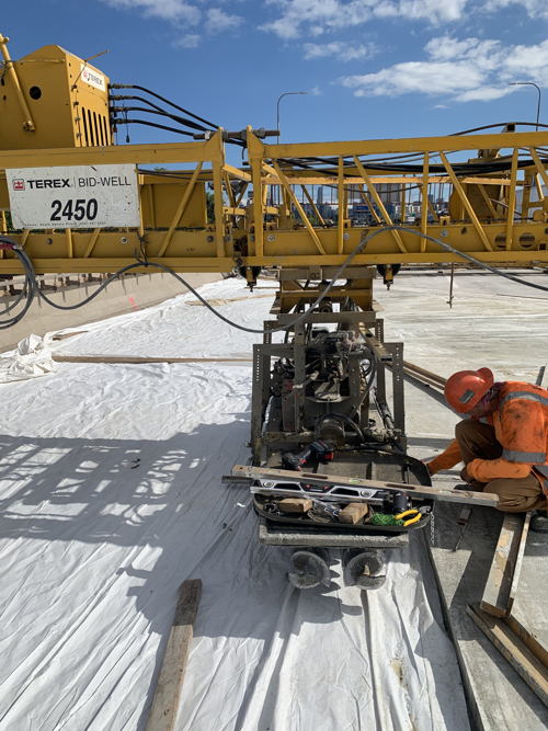 - Saw-cutting, removal, preparation and placement of concrete pavement patches at various locations continues.
