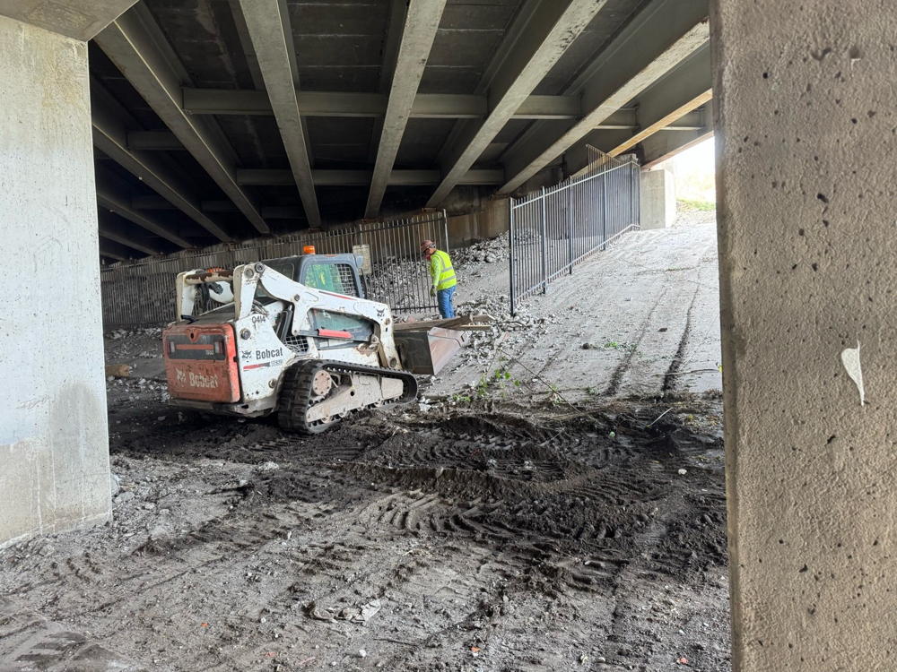 - Structural concrete and steel repairs on bridge piers and concrete and steel beams under various bridges continues.
