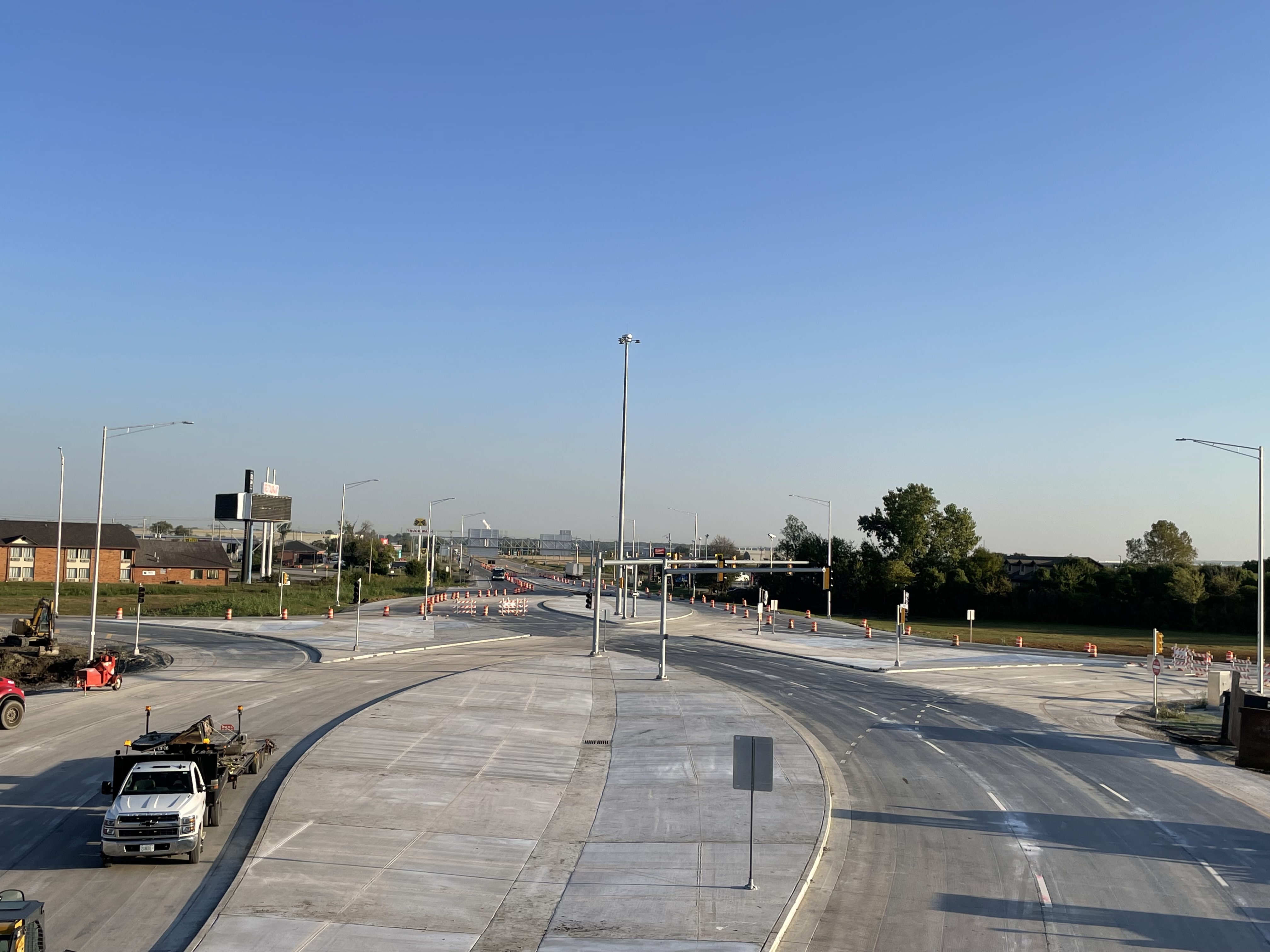 The new, modern interchange, located in the heart of the warehouse district in Pontoon Beach and Edwardsville, features a diverging diamond design that improves traffic flow and enhances safety throughout the area.